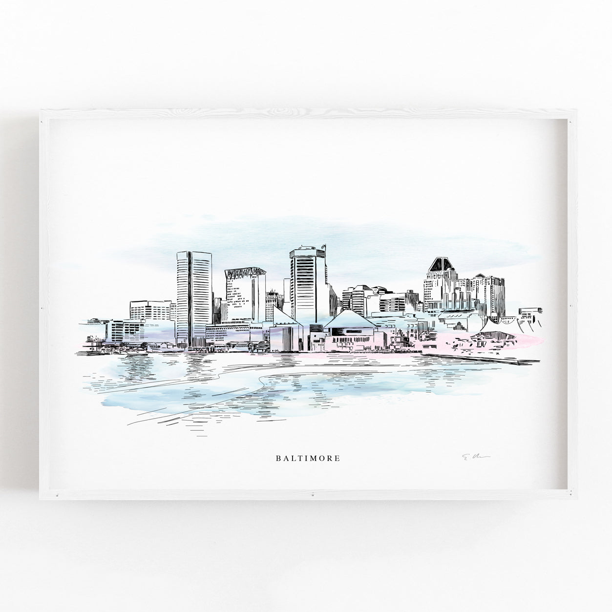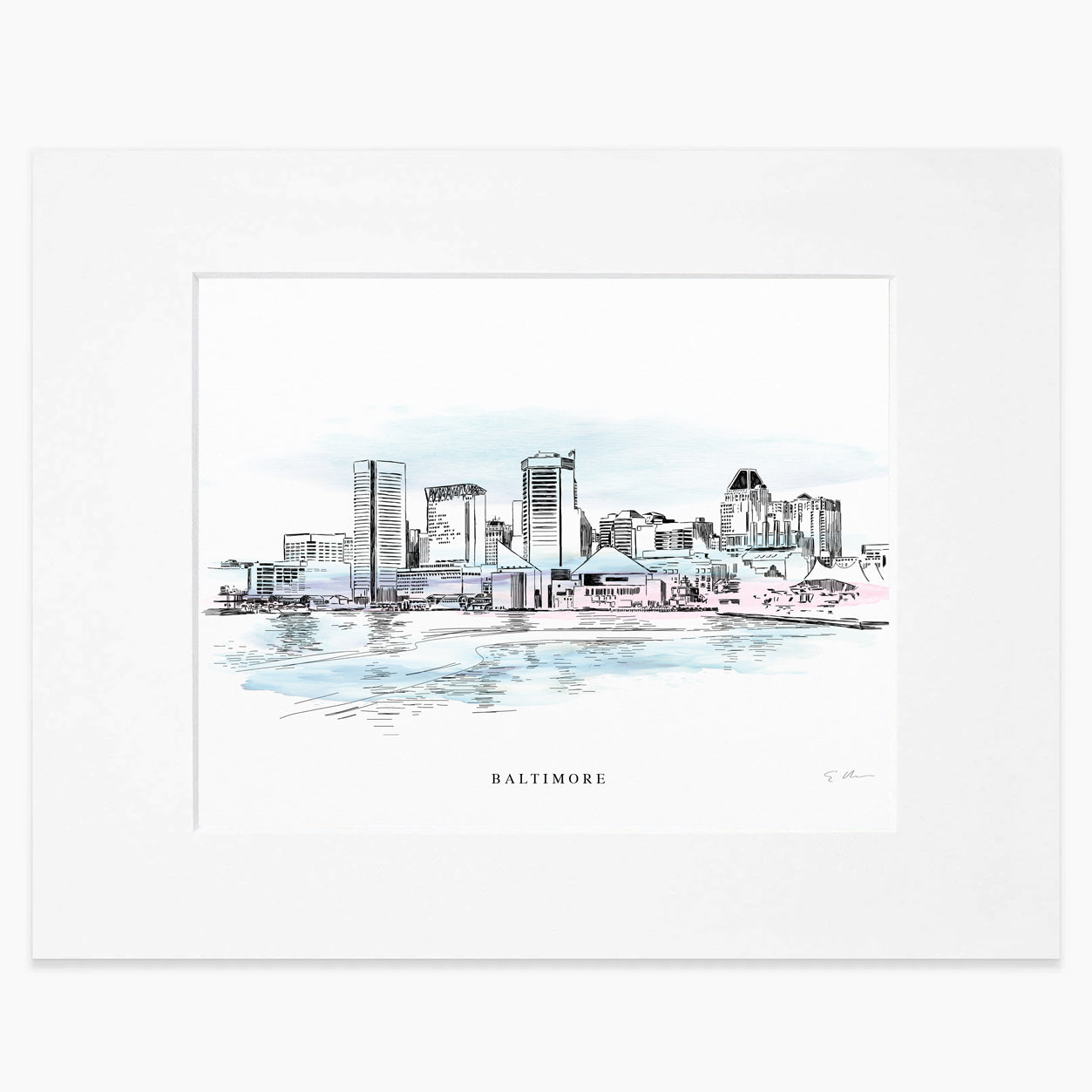 This beautiful hand-drawn Renaissance-style pen and ink artwork captures the iconic Baltimore Skyline. A perfect blend of ink and watercolor, reproduced on our signature watercolor paper imported from Italy. This piece evokes a classical style developed during the high renaissance period in history. Each print comes complete with a white matte and backing - ready for easy framing using archival inks. Every art print is signed by the artist.