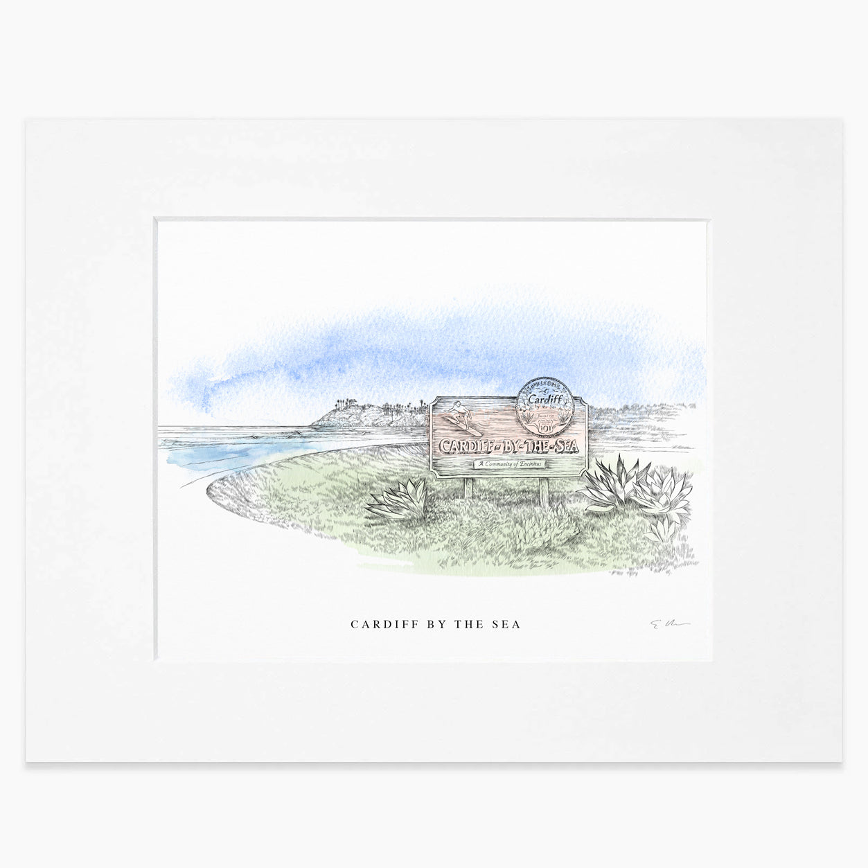 This beautiful hand-drawn Renaissance-style pen and ink artwork captures the iconic Cardiff by the Sea Skyline . A perfect blend of ink and watercolor, reproduced on our signature watercolor paper imported from Italy. This piece evokes a classical style developed during the high renaissance period in history. Each print comes complete with a white matte and backing - ready for easy framing using archival inks. Every art print is signed by the artist.
