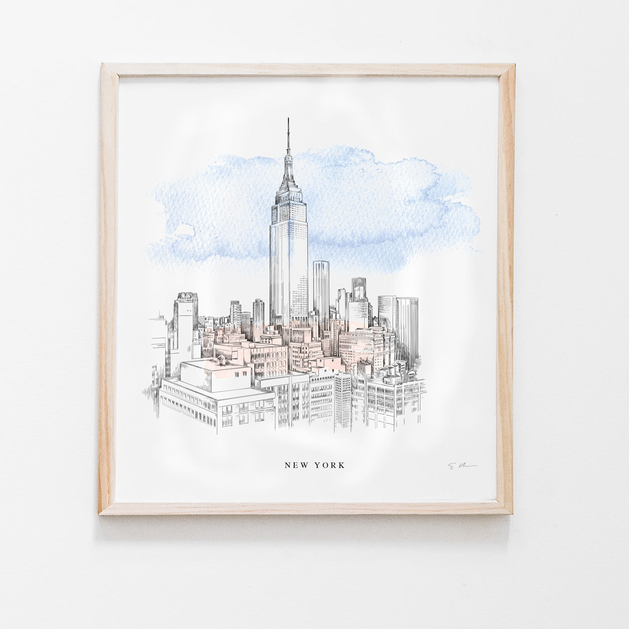 This beautiful hand-drawn Renaissance-style pen and ink artwork captures the iconic NYC skyline. A perfect blend of ink and watercolor, reproduced on our signature watercolor paper imported from Italy. This piece evokes a classical style developed during the high renaissance period in history. Each print comes complete with a white matte and backing - ready for easy framing using archival inks. Every art print is signed by the artist.