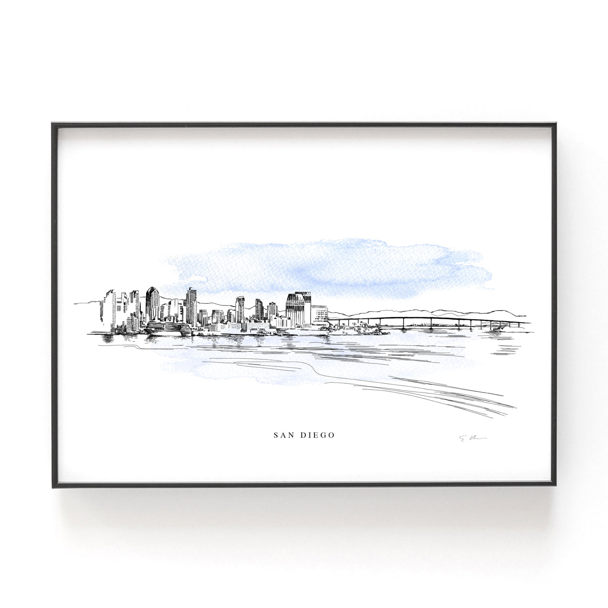 This beautiful hand-drawn Renaissance-style pen and ink artwork captures the iconic San Diego skyline. A perfect blend of ink and watercolor, reproduced on our signature watercolor paper imported from Italy. This piece evokes a classical style developed during the high renaissance period in history. Each print comes complete with a white matte and backing - ready for easy framing using archival inks. Every art print is signed by the artist.