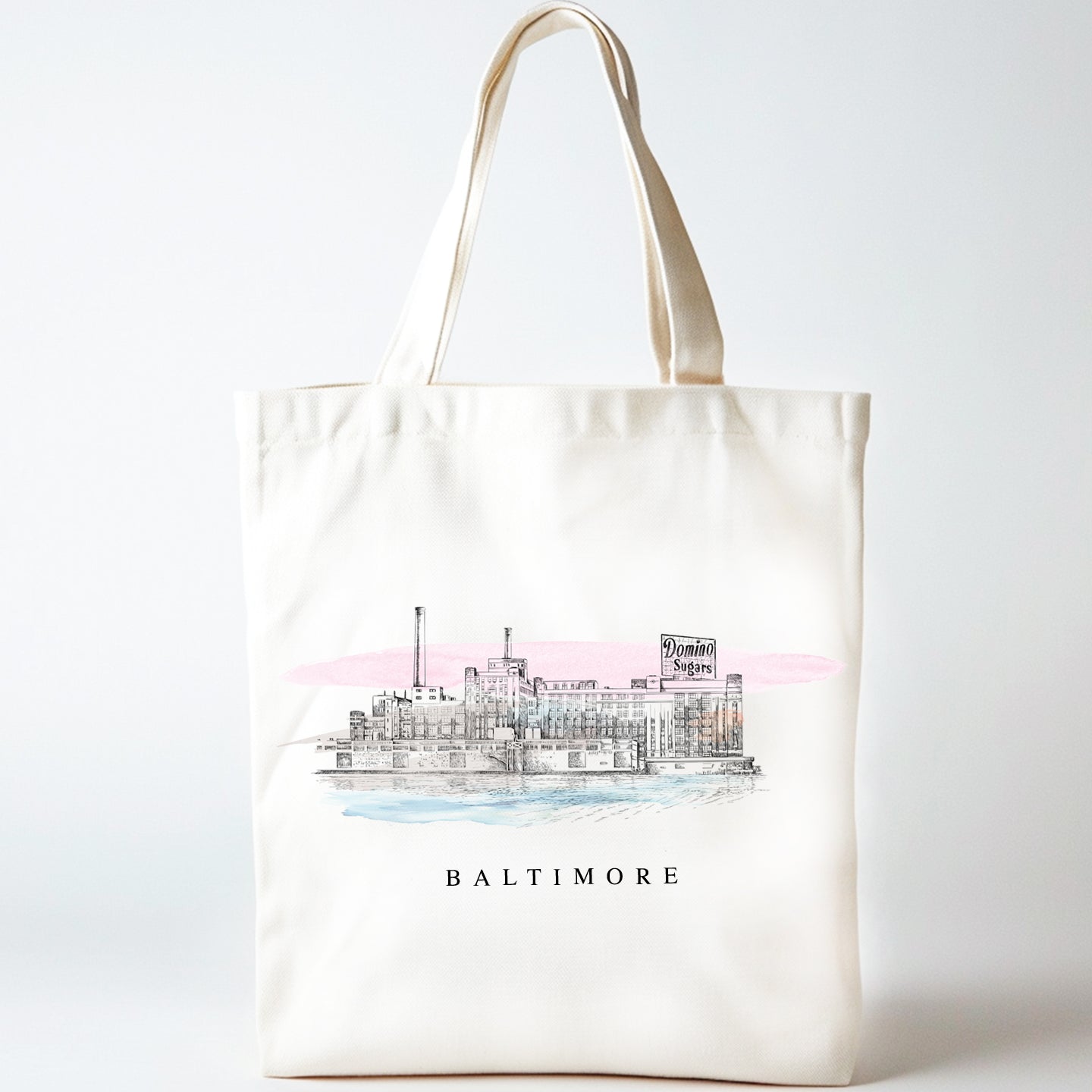 Our Baltimore Skyline Pen & Ink hand-drawn Renaissance Style tote bag is made from durable 100% certified organic cotton. The organic cotton self-fabric handles are reinforced with stress-point stitching for durability and to carry a heavy load. Our tote bags are perfect for a visit to the library, a day at the beach, or a trip to go grocery shopping.