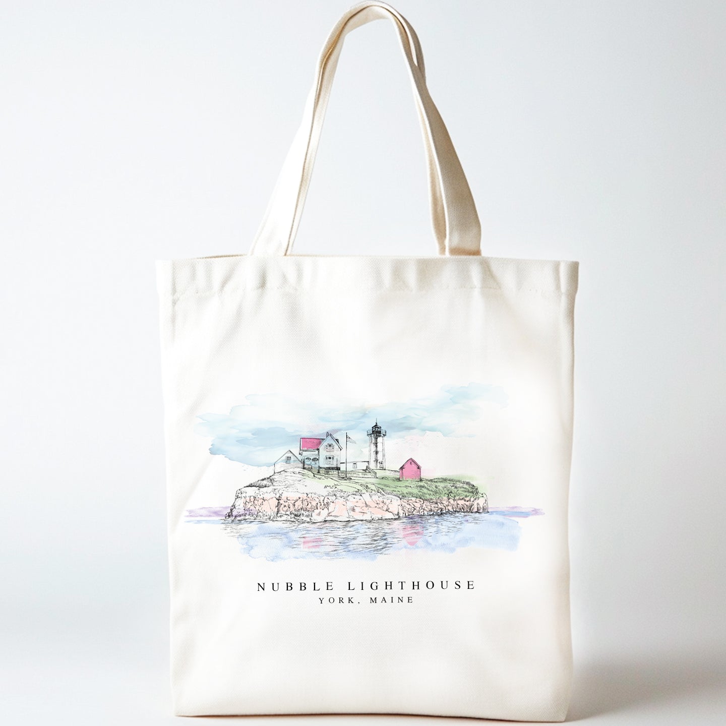 Our Nubble Lighthouse Pen & Ink hand-drawn Renaissance Style tote bag is made from durable 100% certified organic cotton. The organic cotton self-fabric handles are reinforced with stress-point stitching for durability and to carry a heavy load. Our tote bags are perfect for a visit to the library, a day at the beach, or a trip to go grocery shopping.