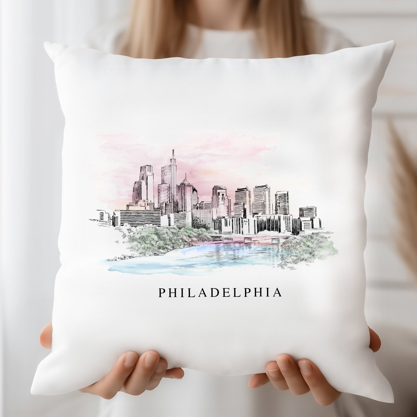 Our Philadelphia Skyline Pen & Ink hand-drawn Renaissance Style 18" x 18" Pillow Covers are made from 100% cotton twill fabric and are durable and soft to the touch.