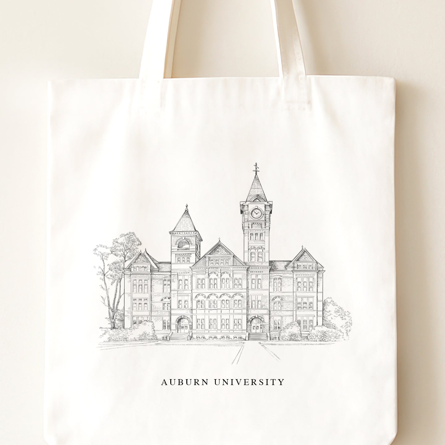 Our Auburn University Pen & Ink hand-drawn Renaissance Style tote bag is made from durable 100% certified organic cotton. The organic cotton self-fabric handles are reinforced with stress-point stitching for durability and to carry a heavy load. Our tote bags are perfect for a visit to the library, going to class, or a trip to go grocery shopping.