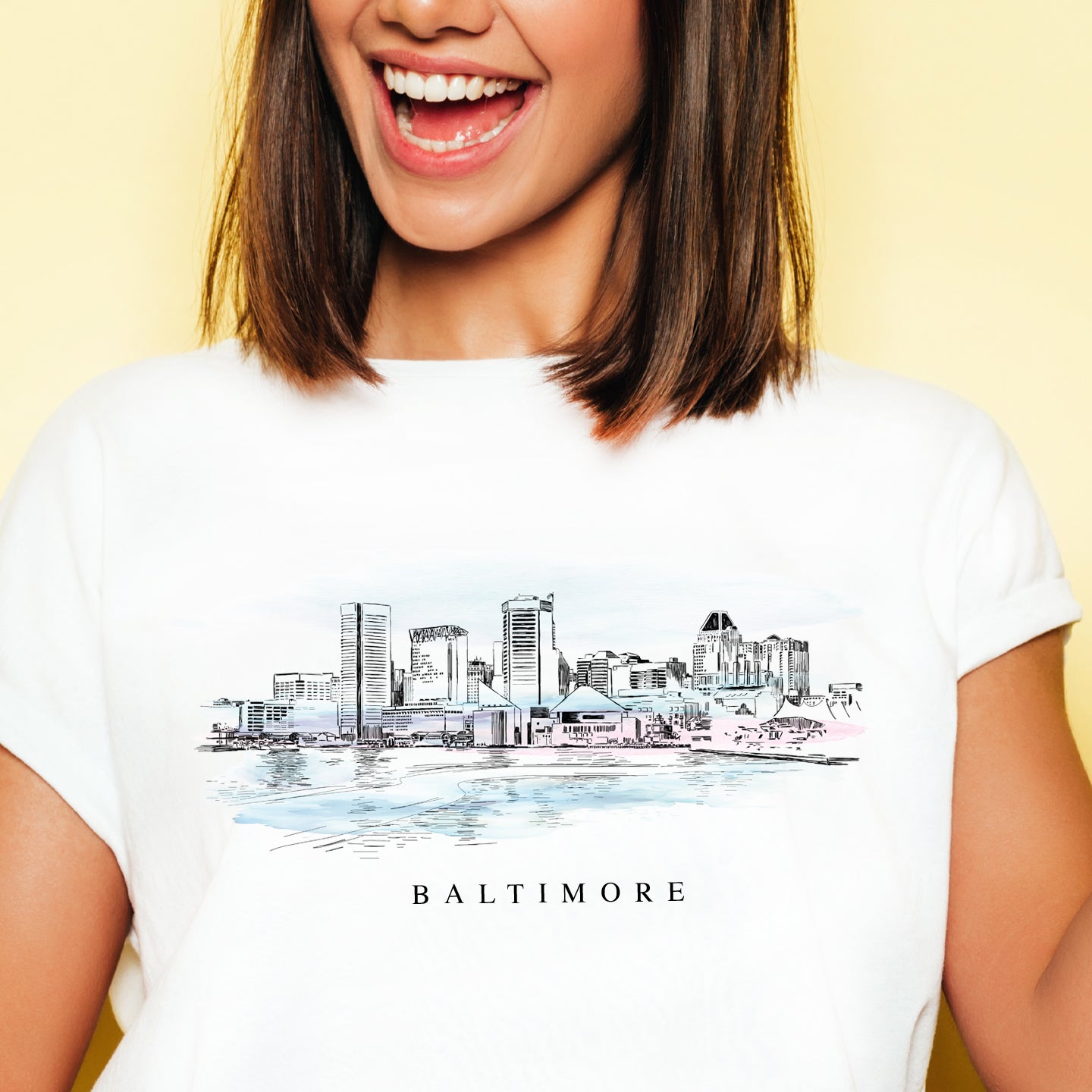 This souvenir style design features the Baltimore Skyline. Our Pen & Ink hand-drawn Renaissance Style Wearable Art is comfortable and casual. Our heavyweight unisex t-shirt will quickly become one of your favorite souvenir t-shirts while visiting Baltimore. Made from 100% cotton, it wears well on anyone.